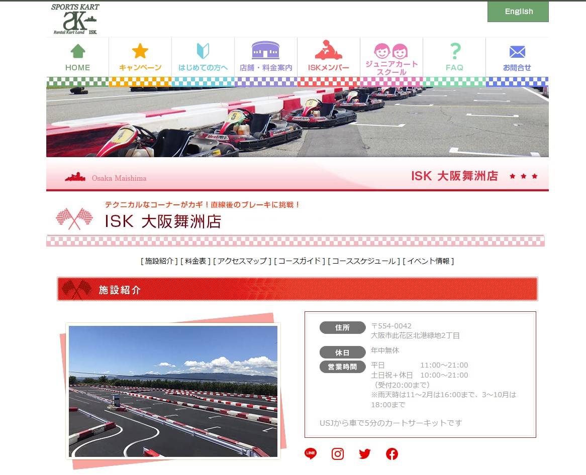 大阪市の舞洲でサーキットで本格レーサー体験ができるレジャー施設【ISK大阪舞洲店】。ゴーカートでの走行は、こどもから大人まで楽しめます。