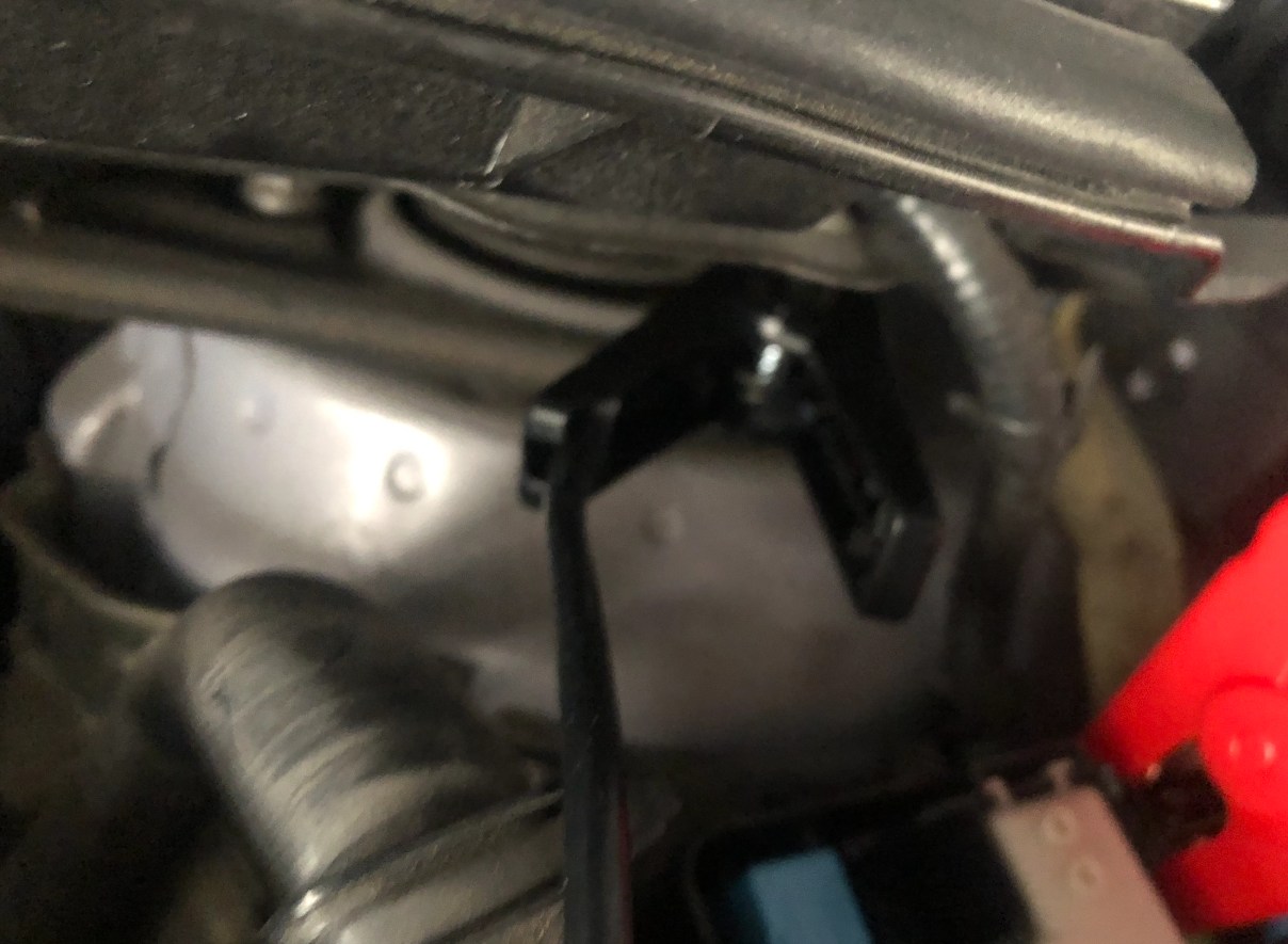 黒いケーブルはその奥にあるストラットタワー(サスペンション)を固定してるボルトに接続(挟んだ)