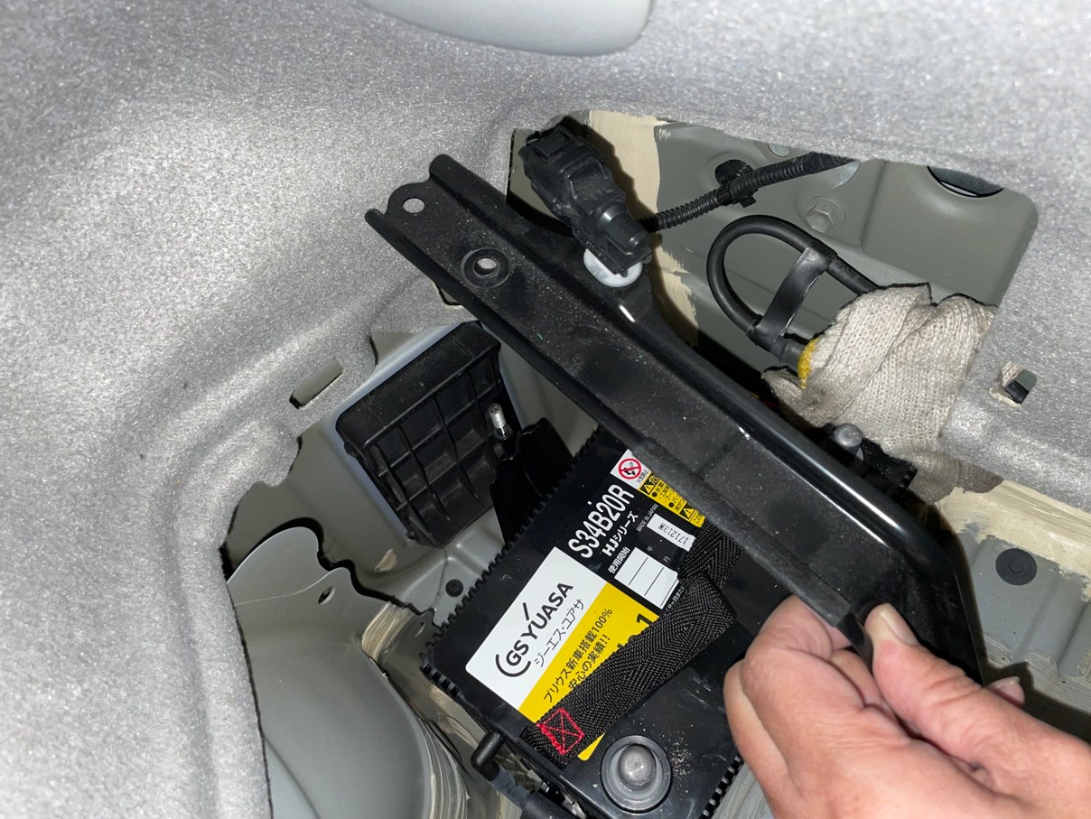 はずしたケーブルはバッテリー端子に当たらないようほごしておく