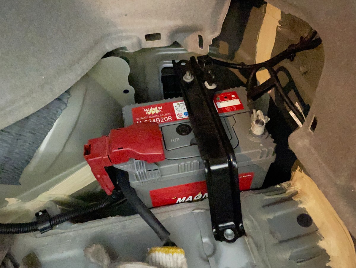 マイナスからはずして、次にプラスの赤いケーブルをはずす