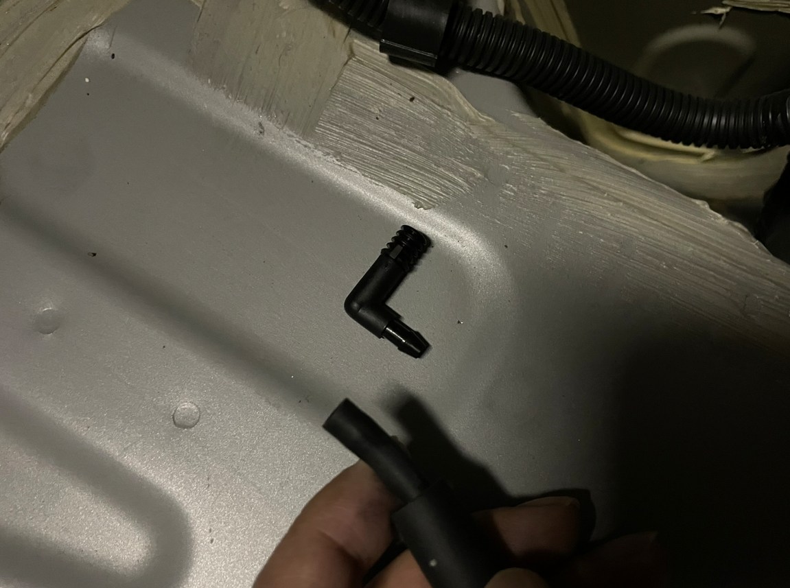プリウスは車内にバッテリーがあるので、このホースが無いと、車内にバッテリー生成の気体(希硫酸)が放出されてしまうののでこういうホースで社外へ放出するためのバイパスを作ってるそうです。