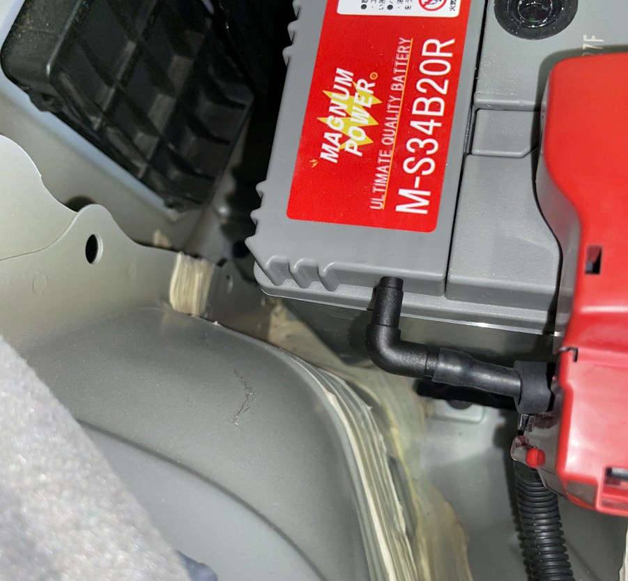 ZVW30プリウスの補機用バッテリー交換と硫酸ガス抜きホース