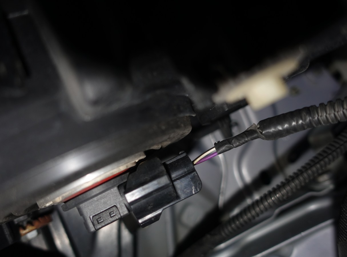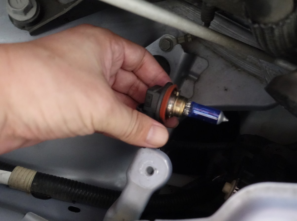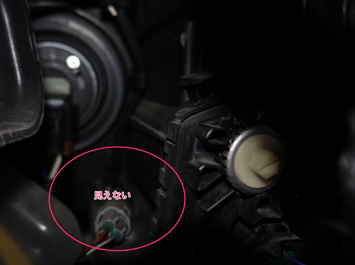 こちらは障害物がないので、奥の方のヘッドライトバルブコネクターを手探りで探して同様に交換するだけ