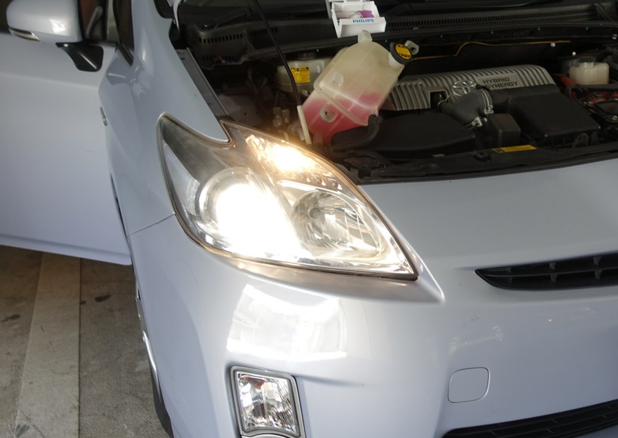 プリウスのヘッドライト交換作業でした。
