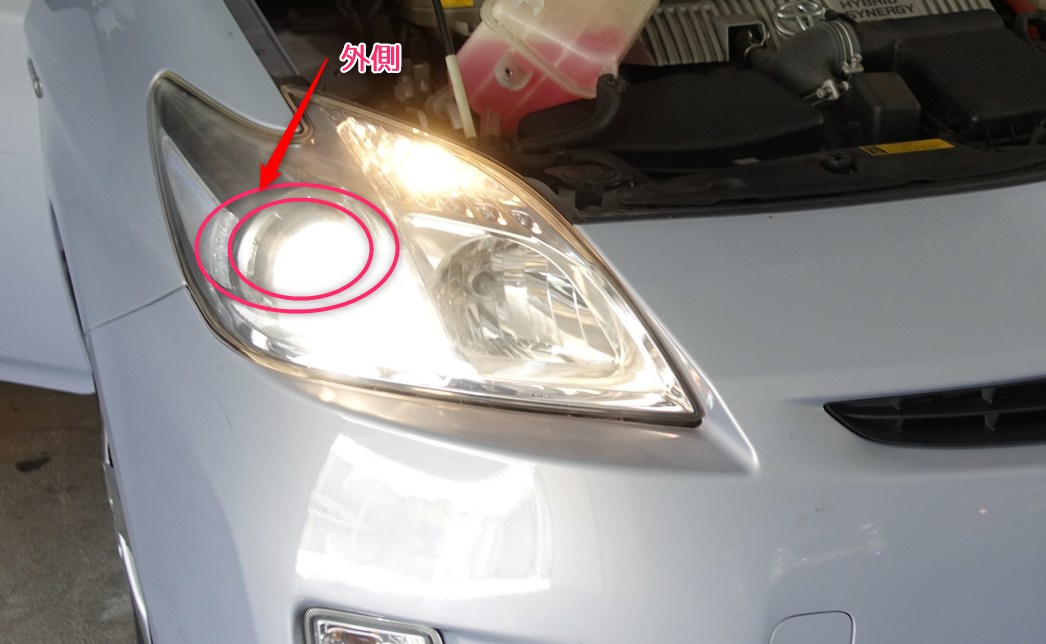 ヘッドライトバルブの位置は外側にあります。