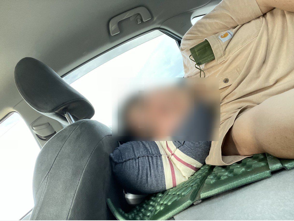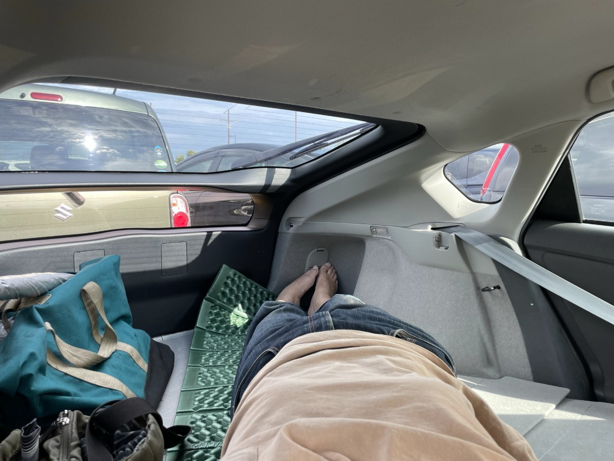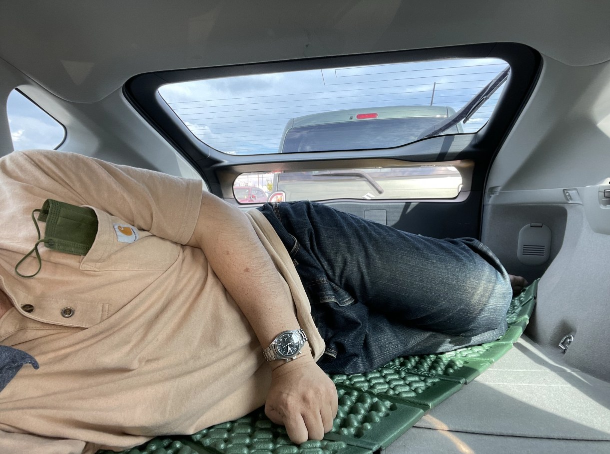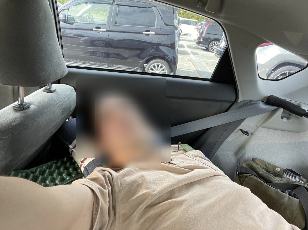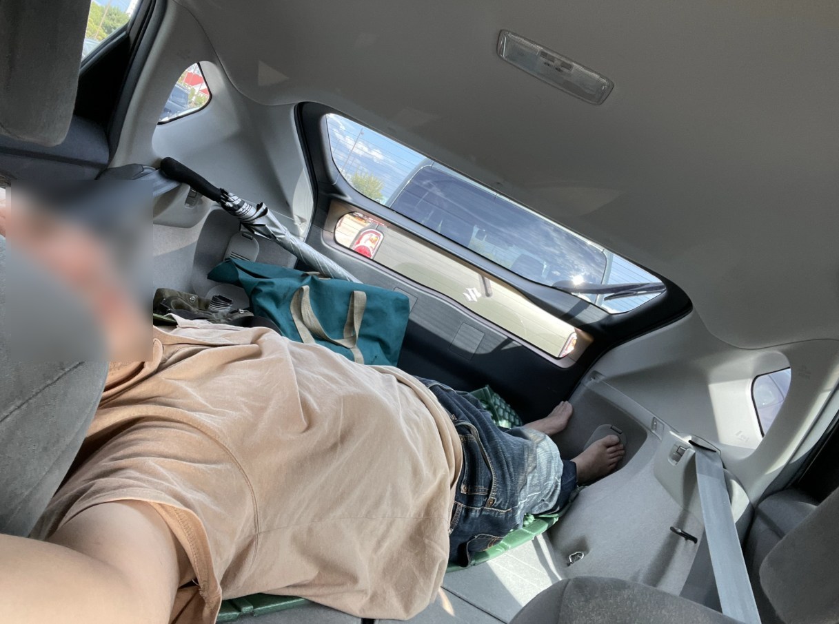 運転席を前に動かして、リアシートのフロアになにか置いたらもっとらくになるかもしれない。